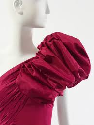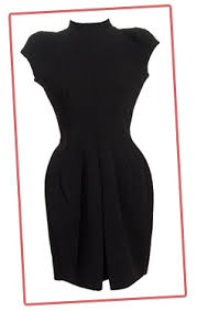 CRISTOBAL BALENCIAGA: Ruháira jellemző a fekete, drappírozott selyem alkalmazása, a farkasfog díszítés és a krinolin.